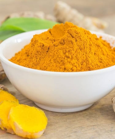 High-curcumin turmeric roots, fingers, and slices for food and herbal applications.