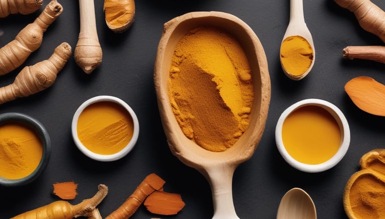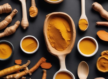 High-curcumin turmeric roots, fingers, and slices for food and herbal applications.